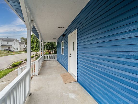Nothing but Blue Skies in New Castle! Fully remodeled 2 level in the heart of town. Check out the covered front porch! You could walk to the town square. Beautiful open Dine-In kitchen with plenty of room for a Dining Table/Island. From the kitchen, you can enjoy meals on your deck. W/D hook up off kitchen with plenty of space to add a folding table/drying rack. Bath on main is a fully tiled shower/tub combo. Bedrooms 2 and 3 off kitchen. Upstairs you will find your luxurious Primary bedroom suite. Dual Vanity bath with tiled shower/tub combination. Detached 2 car garage with 4' bump out for your workshop. Attic storage above garage. Plenty of parking w/driveway to the side of garage and 2 spaces in front of garage. Fully Fenced backyard