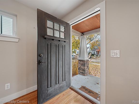 Colonial Charm Meets Modern Living in this 4-bed, 2.1-bath home ideally situated in the desirable City of Royal Oak. The covered front porch accented with custom masonry gives this inviting home exceptional curb appeal and a warm welcome. Extensively renovated with an upper addition in 2013, it combines timeless craftsmanship with thoughtful modern updates throughout. The open floor plan provides effortless flow for entertaining and everyday living, highlighted by solid oak floors, recessed lighting, and a stunning stone/slate gas fireplace, perfect for cozy nights in.