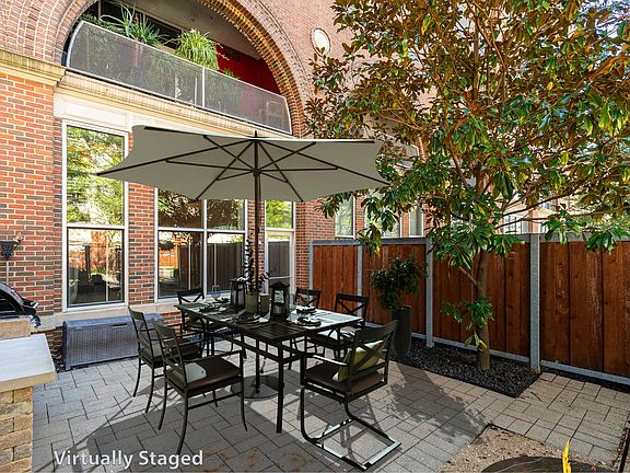 RARE first floor 2 bedroom with a large 29x17 / 525sf PRIVATE PATIO with built in grill! IDEAL LOCATION within blocks of Nationwide Arena (hockey), Huntington Park (baseball), Lower.com Field (soccer), the Riverfront Park (walking, jogging, biking and kayaking), Downtown and 10 minute walk to the Short North (all the best restaurants) and Goodale Park! SOARING 13'8'' ceilings in this 1530sf unit. Massive living and dining room areas. Kitchen with granite and stainless (could even be extended if you wanted it larger) Owner's suite with walk-thru closet and large bath with double sinks. Good sized guest bedroom. FRESH PAINT (walls) / NEW CARPET. TWO side by side parking spaces in secure garage. LARGE 11x11 private storage unit. Shared roof stop deck!