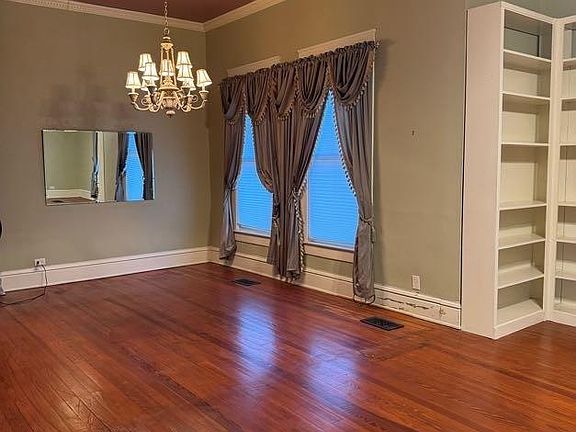 Welcome to a timeless gem situated just minutes from the courthouse square. Built in 1907, this single-story 3 bedroom, 2 bath home offers exquisite of historical features. The elegant living room, featuring polished hardwood floors & 11 ft ceilings is anchored by a classic white fireplace. Natural light floods the room through tall windows. The unique indoor heated swimming pool is set within a rustic frame of exposed wooden beams, making it a welcoming retreat. The vintage-inspired bathroom showcases a clawfoot bathtub & a harmonious blend of white & blue mosaic tiles. The kitchen stands out with its natural wood cabinetry, reaching from floor to ceiling. Rich architectural details like intricate crown moldings & two fireplaces add charm & warmth. Stained-glass pendant lighting & windows throughout adds a touch of color. Step outside to the covered porch, ideal for relaxation & social gatherings. Embrace the opportunity to own a piece of history where every corner tells a story.