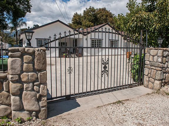 Inspiring gated Ojai retreat! Escape the stresses of life and enjoy the calming effects and peaceful neighborhood of Meiners Oaks! This 5 bed + 4 bath single story home is perfectly set up for 3 families plus a 2 car garage! Semi-circular concrete driveway with room for 10+ cars! Newly painted in/out with leaded glass double door entry! New laminate tile flooring in main house (3 bed+1 bath+double laundry area) with gorgeous brand new kitchen that has new quartz countertops, new euro white cabinets, SS appliances, glass tile backsplash and Rec. lights! New bath with tile floors, new tile shower, new plumbing/lighting, new toilet and new quartz counters/cabinets! Bedrooms have new carpet & paint, ceiling fans and mirrored closet doors! Guest quarters in back of house has kitchen, living room, bedroom+full bath! Front guest quarters (old garage) has little kitchenette, bed+full bath & high ceilings! Large 10K sf flat lot with painted fencing and room for entertaining in private backyard with storage shed and fruit trees(4 avocado/1 orange/1 lemon! Large covered patio with new tile flooring (could be enclosed) plus a full bath. Short walk to some of the best restaurants and organic market! MUST SEE! or check out our video tour attached to this listing