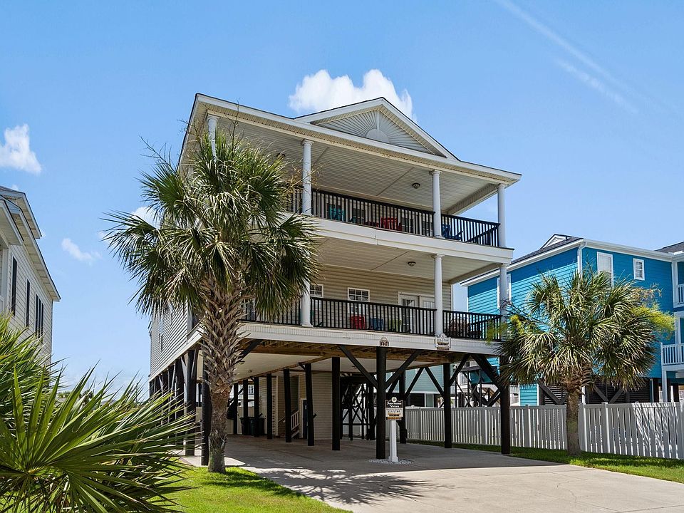 Welcome to your slice of coastal paradise in the heart of Murrells Inlet, SC — just two blocks north of the iconic Garden City Pier and directly across the street from the shimmering Atlantic Ocean. This raised beach retreat is a true gem with 7 spacious bedrooms and 7.5 bathrooms, thoughtfully designed to welcome large families, groups, or savvy investors looking for a high-performing rental machine. Inside, you’ll find relaxed coastal charm blended with modern comfort. This fully furnished home includes a dining room that comfortably seats up to 20 guests, and with accommodations to sleep 20, there’s space for everyone to gather and unwind. The chef’s kitchen boasts gorgeous countertops, stainless steel appliances, and room to cook up memories and meals. An interior elevator offers easy access to all floors — no hauling beach bags or groceries up the stairs here. Step out back and you’re greeted with a sprawling fenced yard, complete with a private heated inground pool, permanent concrete cornhole boards, and ample Polywood porch and pool furniture designed to withstand the salty breeze. And let’s not forget the heart of the outdoor fun — Salty Sara’s, your very own custom bar, ready for afternoon cocktails and evening laughs. There’s plenty of room for RV or boat parking, and with the beach just steps away, guests can go from poolside to oceanside in under a minute. Whether you're looking for a beachfront family escape or an investment property with major rental potential, this home checks every box with laid-back Lowcountry style. Come live the beach life — or let others vacation in it while you collect the rewards.