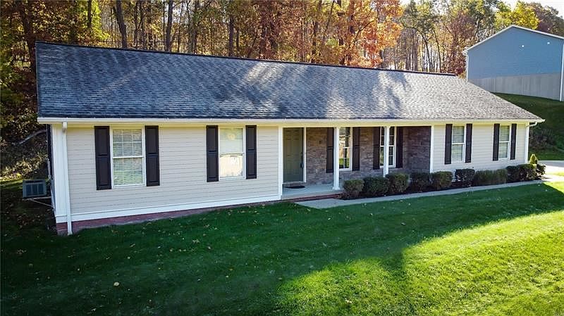 This is one level living at its finest! Stone and hardiplank maintenance free ranch style home is loaded with amenities. The moment you step through the front door quality is what astounds you. Hardwood floors throughout, open floor plan, spacious living room, dining room that leads to a private rear patio perfect for entertaining! First floor laundry, three bedrooms, concrete drive, attached oversize two car garage, all on wooded lot. Convenient to shopping Route 8 and BC3.