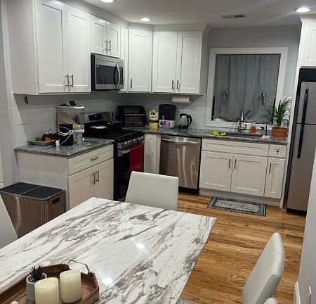 Modern and spacious 3-bedroom, 2-bath apartment located on the 2nd floor of a recently built multi-family home in the Peterstown section of Elizabeth. This unit features an open layout with bright living spaces, a modern kitchen with stainless steel appliances, and ample cabinet storage. Primary bedroom includes a private full bath. Central heating and cooling, in-unit laundry, and plenty of closet space provide comfort and convenience. Parking available. Close to schools, shopping, dining, and NYC transportation. A great opportunity to enjoy contemporary living in a prime location!