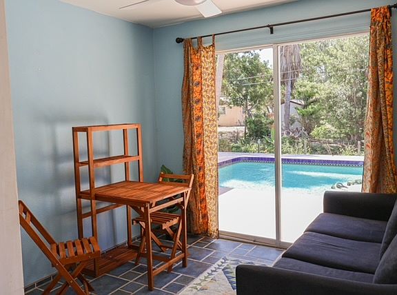 Enjoy amenities such as off-street parking, on-site laundry services, and a refreshing swimming pool for your leisure. To ensure your security and peace of mind, the property is also equipped with security cameras.