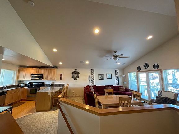 Available November 1, 2025 thru June 30, 2026 - this fully furnished townhouse is located in the Wapato Ridge gated community, two blocks from downtown Manson. Two level living features a sitting room on the level entry, with bedroom, bath, and laundry room with washer and dryer. Upstairs features spacious living room, dining and kitchen with vaulted ceilings, balcony off the living room, two bedrooms and two baths. Attached two car garage! No pets allowed.