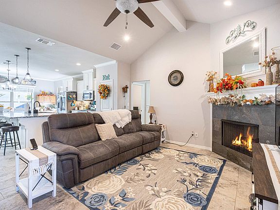 Welcome to this stunning 2020-built home, perfectly located in the highly sought-after Lindale ISD and the family-friendly Kingdom Estates community. This neighborhood offers an array of amenities, including basketball courts, a playground, a pavilion with picnic tables, and a fenced dog park, creating a lively and welcoming atmosphere. Inside, the open-concept design is perfect for modern living, highlighted by a grand kitchen island with abundant storage and newer touch screen, smart refrigerator. The inviting living area features a gorgeous tiled corner fireplace with gas logs, ideal for cozy evenings. The primary bedroom is a true retreat, offering generous space and natural light, while the large guest bedrooms easily accommodate king-size beds. Additional features include newer washer and dryer, a 2-car garage outfitted with built-in cabinets and shelving, ensuring plenty of storage. Outdoors, the backyard is an entertainer’s dream with an extended patio and gazebo, colorful flower beds, and a tucked-away storage building for tools and lawn equipment. This home combines modern comfort with family-friendly charm. Sellers’ move out of state is your opportunity to make this stunning home yours! Don’t miss your chance to own a beautifully maintained property ready for its next chapter.