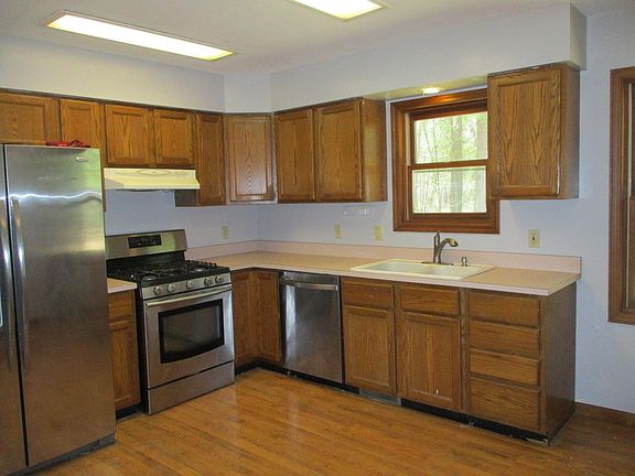 Lovely ranch nestled in the woods. Home is in a quiet neighborhood setting on 1.48 acres. Mature burning bushes afford privacy for the front yard, mature trees and plentiful perennial plantings, and a decor pond make this a beatiful out door area.. Inside, the home features 3 bedrooms, 1 bath. Large open kitchen, stove and dishwasher are included in the sale. The full basement is ready for you to finish with 2 full egress windows. 2 car attached garage.