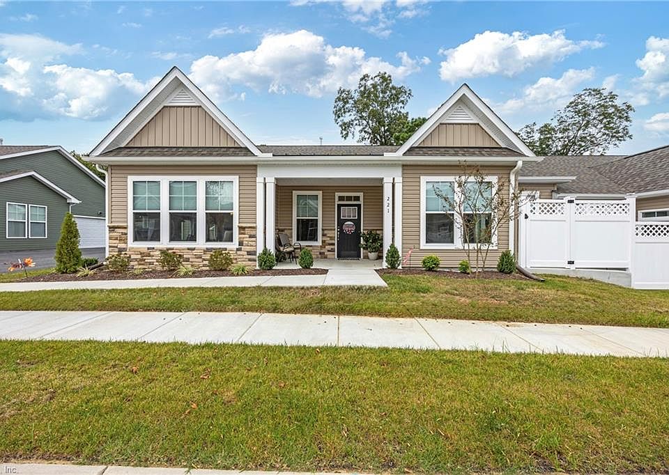 Buy new without the wait! Built in 2024, this beautifully maintained one-level townhouse offers all the benefits of new construction plus thoughtful upgrades, including a brand-new vinyl privacy fence. Inside, you’ll find an open, inviting layout with 2 spacious bedrooms, 2 full baths, and a versatile flex room; perfect for an office, guest space, or cozy den. The large kitchen is a dream with plenty of counter and cabinet space. Step outside to your fenced patio and large backyard. Enjoy peace of mind with a pre-listing inspection already completed and the remainder of the builder’s warranty in place. This friendly, tight-knit community features a clubhouse, pool, fitness center, meeting space, and fun resident events throughout the year. Conveniently located near all things Hampton Roads while tucked away in a quiet, private setting. Your morning coffee spot awaits on the charming front porch! Come see why this one-level gem feels just like home!