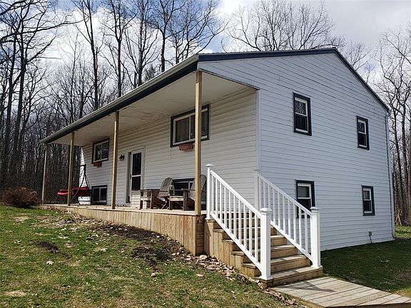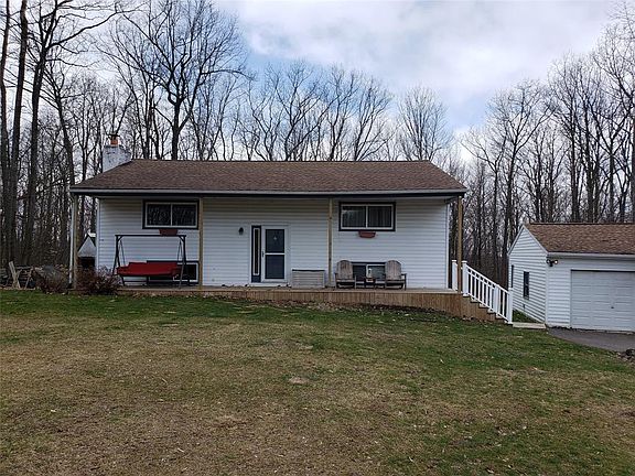 Great opportunity for that private country setting. Lovely wood lot but with plenty of yard space. Updated flooring and modern colors have been used throughout. Lovely back deck for entertaining Updated bath and large 1/2 bath with Laundry. Large windows in the lower level for lots of natural light. Possibility to add on to the lower level. Lots of privacy as the double lot is surrounded by trees. 2 car detached garage and updated covered porch. So many options! 2014 ultra high efficiency propane heating installed.