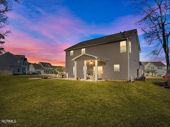Wanting to be minutes away from the water, but not having to pay the price for water access? Then this one Owner Home is for you! Located less than 5 minutes away from 3 boat ramps (one private and two public), this 3 bedroom, 2 1/2 bath Home with bonus loft, is situated in the Waters Edge Subdivision, at the end of a cul-de-sac, and nestled on a welcoming lot that backs up to established woods! You will love the curb appeal of this Home starting with the side loading 2 car garage and covered front porch, perfect for your rocking chairs. Some of the great features include an open concept, formal dining room, family room with propane fireplace, an eat-in kitchen, large breakfast bar for extra seating, granite countertops, stainless steel appliances, large pantry and LVP flooring throughout the first floor. Head upstairs to the loft and hallway with laminate flooring, as well as a very spacious master bedroom with a vaulted ceiling, three closets of which 2 are mirrored sliding doors. The master bath includes a walk-in shower, dual vanities, and a separate tub. Also on the second floor are two guest bedrooms that each have walk-in closets, a full guest bath, a second-floor laundry, and a large loft area that can double as an office space or playroom. All bedrooms have recently installed carpeting. An additional gem to this property is the private backyard that features a covered patio and an additional stoned patio with a firepit. This home is just minutes from Swansboro, the back gate of Camp Lejeune and beautiful beaches. Make this home yours, call today for an in-person walkthrough or virtual tour!
