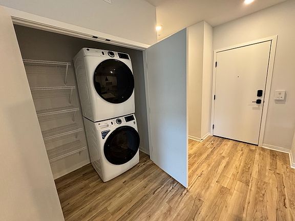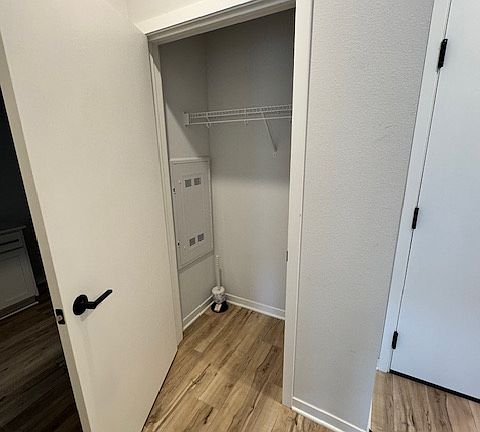 Lots of closet space, an included storage unit on the same floor, with garage parking available ($50/month). This unit in particular has extra privacy due to the pool house being between it and the other buildings which limits noise. High ceilings, laminated vinyl in living/kitchen/bathroom. Desirable first floor location with a walk out patio to ground level.