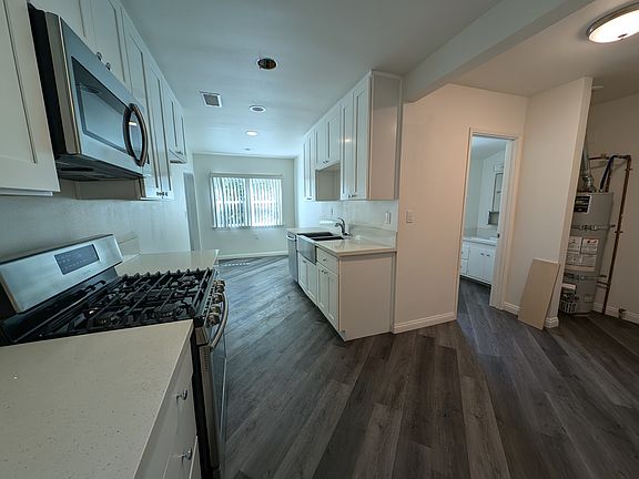 Sharp and spotless upgraded 2 bedroom home in Covina. There are 2 other units on this lot but this was the original home. Features of this property include: fresh paint, newer flooring, central heating and air conditioning, a remodeled kitchen with stainless appliances, laundry hookups, and a small back yard with a covered patio. This home includes one parking space in a shared garage and one open air parking space. The owner pays for the water and the tenant is responsible for the gas and electric.