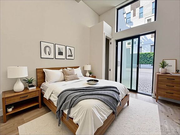 This apartment features an over sized living room with 14ft high ceilings and a huge open kitchen and dining area.