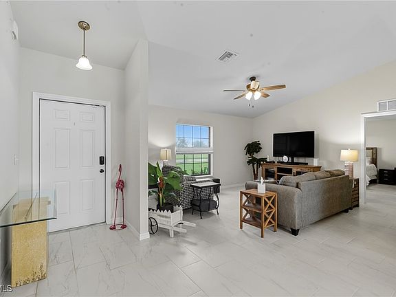 Welcome to your Southwest Cape Coral retreat! This beautiful 3-bedroom, 2-bath home offers 1,502 square feet of comfortable living in one of the most desirable neighborhoods in SW Cape Coral. NOT IN A FLOOD ZONE!! You’ll love the bright, open floor plan featuring a spacious living area, modern kitchen, and split-bedroom layout for added privacy. Step outside to your fenced backyard — perfect for kids, pets, or entertaining under the Florida sunshine. The neighborhood’s convenient location means you’re close to shopping (Farmer Joe’s), dining, parks, and Cape Coral’s best schools. Whether you’re a first-time homebuyer, downsizing, or looking for a vacation retreat, this home checks every box. Low assessments.