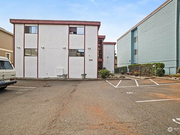 Excellent opportunity for first time home buyer or as an investment. This second level end unit condo features a spacious bedroom, large living area with a deck off the dining space. Kitchen has updated fridge and dishwasher. Come home and park in your assigned space and enter through a locked security door. Condo comes with a locked storage space in lower common level which is next to community rec room. Building also has a coin-op laundry area. New carpet just installed. Excellent location close to shopping, Dining, airport, freeway and walking distance to Olde Burien.