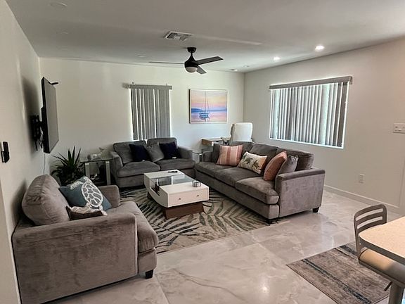 Newly remolded home with new appliances, large Tile, new Baths and private mother-in-law efficiency. Walk to Downtown Tennis and Atlantic Ave. Large fenced back yard, parking for three cars and Hurricane Windows. Small dog ok. No cats.No smoking allowed. No Smoking of any sort. Seasonal rent. 3 month minimum. Newly renovated 3 bedrooms and 3 baths. Ample parking, patio with grill. Close to downtown and beach. Walk to tennis center. All utilities, fully furnished, towels, and internet. Great find in Delray. 19,000 for 3 months or 23 thousand for four months. Owner live in town to address and potential problems.