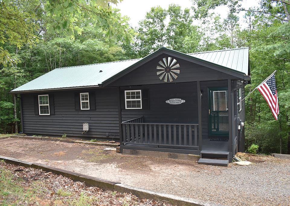 Come Get Away and Relax! As soon as you step onto the inviting front porch, you'll know this is a place to unwind. Settle into a rocking chair, sip your morning coffee, and listen to the birds welcoming the day. Inside, the open floor plan connects the kitchen and family room, centered around a stunning stone fireplace that sets the perfect mood for cozy gatherings. Just beyond the French doors, a covered deck, ideal for relaxing with your favorite beverage and listen to the creek at the end of the property as the water ripples gently over the rocks below. The owner's suite offers a private retreat with a walk-in shower and spacious closet. Down the hall, you'll find another versatile room that can serve as a guest bedroom or bonus space, plus a full bath with a luxurious soaking tub. The laundry area is conveniently tucked behind louvered doors in the hallway. Downstairs, discover a huge recreation room—the perfect spot for a home theater, game room, or lounge area. Around the corner, there's another full bath with a walk-in shower and a large bedroom or bonus room with its own walk-in closet. You'll also find an abundance of storage space for all your gear, hobbies, or seasonal dcor. Whether you're looking for a full-time home, a weekend retreat, or a summer getaway—this cabin is ready to welcome you. Come home. Come for the weekend. Come for the summer. Come home today!