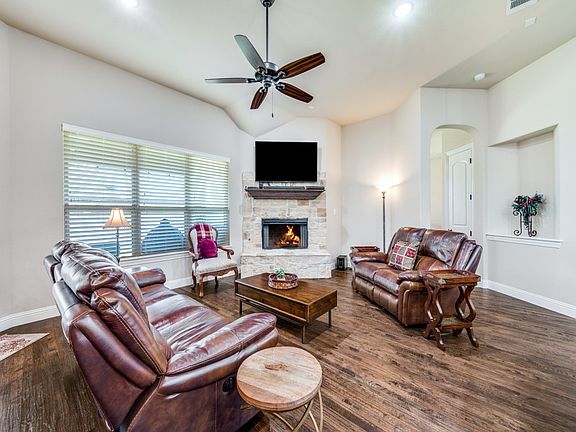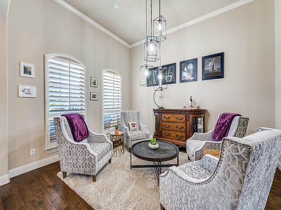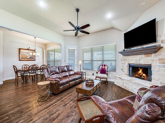 This gorgeous single-story home showcases timeless curb appeal with its striking stone elevation, lush landscaping, and a rare three-car garage. Inside, rich hardwood floors and plantation shutters create an elegant backdrop for the formal dining or sitting room, while the spacious living room with its impressive stone fireplace and wooden mantle serves as the heart of the home. The gourmet kitchen is a chef’s delight, featuring knotty alder cabinetry, granite countertops, a center island, stainless steel appliances, and a gas cooktop, all flowing seamlessly into the sunny breakfast nook. A private study offers the perfect work-from-home retreat, while generously sized guest bedrooms provide comfort and flexibility. The primary suite is a serene escape, complete with bay windows, a spa-like bath with dual vanities, garden tub, walk-in shower, and a large custom closet. Designed for entertaining, the expansive covered patio with its own outdoor fireplace overlooks the spacious backyard, offering the ideal setting for gatherings or quiet evenings at home. The bonus room can easily be converted into a fourth bedroom with the simple addition of a door. Beyond the property, the neighborhood is rich with amenities including a sparkling community pool and splash pad, a park with playground, basketball courts, scenic walking trails, wide-open greenspaces for outdoor games, and so much more for the whole family to enjoy. No MUD or PID, New Roof 2025. Easily Commute to Dallas on the North Dallas Tollway, or to Sherman on 289 or Preston Road.