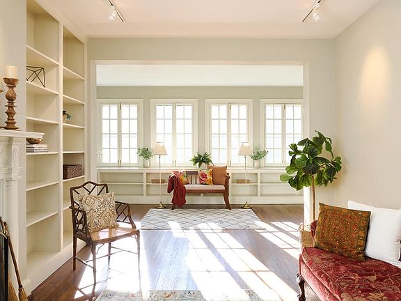 Renovated bathroomWelcoming foyerHigh ceilingsLovingly cared-for groundsHardwood floorsBank of large windowsAmazing light