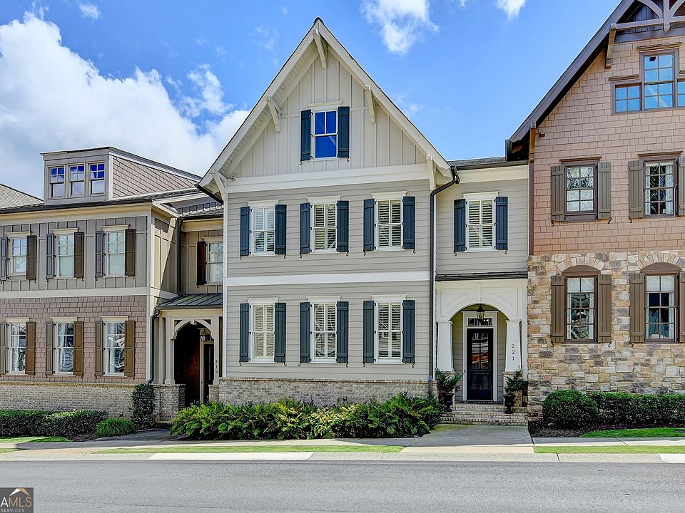Welcome to this stunning town home, with an abundance of upgrades, located inthe prestigious Overlook at Sixes Road community in Canton. This elegant and spacious residence was thoughtfully designed to impress across multiple levels with its luxury finishes. Step inside to a foyer that leads into an open, light-filled main level featuring soaring 10-foot ceilings, massive 8-foot interior doors, and rich on-site finished hardwood floors. The exquisite trim package includes wide crown molding and baseboards. Plantation shutters provide warmth and privacy. A highlight of the home is the INSTALLED ELEVATOR which serves all floors. The chef's kitchen is truly a culinary dream, with stainless steel appliances including double ovens, 5 burner gas cooktop, dishwasher, large central island and plentiful custom painted cabinetry. It's ideally equipped for both gourmet cooking, baking, and everyday meal prep. Premium surfaces, high-end appliances, and thoughtful layout design make this space as functional as it is beautiful. Enjoy relaxing moments on the expansive screened rear porch, upgraded with the EZE Breeze glass window system and privacy shades. This indoor/outdoor space functions as an elegant extension of the main floor for year-round living and entertaining. Upstairs, the oversized primary bedroom pampers with a luxurious attached bath featuring a double vanity, oversized soaking tub, separate shower and spa-like finishes. The custom closet system provides ample space for all of your apparel. The 9-foot ceilings upstairs ensure that the upper level feels grand. Two additional bedrooms and a bathroom offer generous living quarters for family and guests. A large laundry room is conveniently located in upstairs hall. Descend to the fully finished terrace level, where a large media/family room awaits - perfect for movie nights, workouts, or a recreation space. A full bath and workshop room completes the terrace level, making this area fully functional for entertaining, hobbies, or extended stays. The oversized rear-entry garage is both practical and premium - featuring two bays plus an extra storage space. A professionally applied epoxy flooring finish ensures durability and ease of cleaning, making this space as gorgeous as the rest of the home. The home is part of a meticulously maintained community offering a clubhouse, fitness center, pool, and beautifully landscaped surroundings.