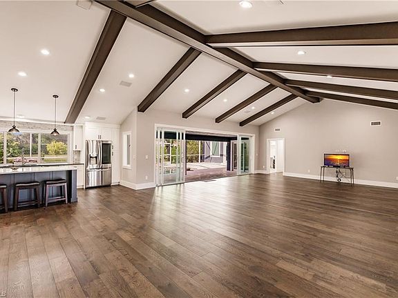 Rarely available, beautiful home on oversized lot in Pine Ridge Estates. Property was completely renovated with a new addition that includes a large primary suite with two large walk-in closets and an oversized bathroom with walk-in shower, three rain showerheads and pebble flooring, free-standing soaking tub, and dual vanities with marble tops. The addition also includes an attached four-car, double depth, air-conditioned garage that will impress the greatest of car enthusiasts. The new garage can easily accommodate tall lifts for additional vehicle storage. Other new features include a metal roof, hurricane windows and doors, a Lutron Pro lighting system, a media room, European oak wood floors, a re-designed custom kitchen with quarts countertops and new appliances. Property includes a fenced-in backyard with front-entry electric gate. A must- see for anyone interested in the highly desirable Pine Ridge Estates neighborhood.