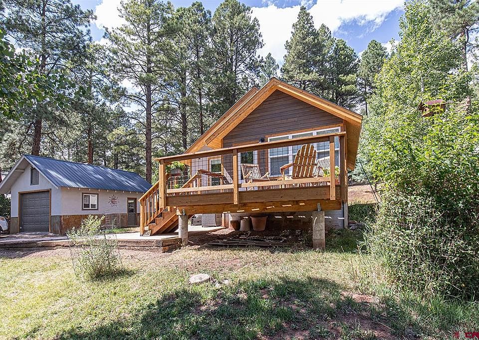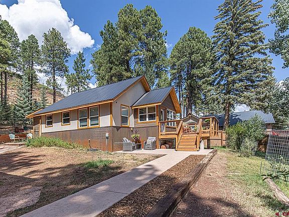 This beautifully redesigned and thoughtfully updated home near Vallecito Reservoir offers modern comforts wrapped in mountain charm. Extensive remodel upgrades include all-new electrical and plumbing, new windows, new blown-in insulation, and new durable vinyl plank flooring. The entryway is washed in morning light and creates a perfect sitting area, while the stylish kitchen features leathered granite counters with a rough edge, custom iron door cabinet pulls, a Haier Euro fridge, and an electric range oven, blending modern function with rustic character. LED lighting illuminates every room, and the abundant natural lighting creates a cozy atmosphere for year-round enjoyment. The 3/4 bath is beautifully finished with a marble vanity and custom tile work in the spacious walk-in shower. One bedroom provides a full closet and a second room functions as a flexible office or guest space with a daybed. Practical updates include a laundry/mudroom with utility sink, new electric baseboard heating in every room, a new electric water heater, and all-electric systems throughout for low-maintenance comfort. The home also features a tiled corner nook for a future free-standing wood-burning fireplace, if desired. Outside, the property impresses with a new front deck, and a stuccoed, insulated and sheet-rocked 1-car garage with decorative wainscoting. The landscaping includes apple trees, lilacs, aspens, iris, and perennial flowers, offering a private, picturesque setting with abundant local wildlife. The home’s exterior features durable stucco with metal wainscoting and a brand-new metal roof, while a spring-fed community well serves these homes with a future cistern in progress to help ensure reliable water access. Part of the beautiful Vallecito Lake community, this property offers a lifestyle rich in recreation. The reservoir stretches for miles and provides excellent opportunities for fishing, boating, paddle boarding, cross country ski trails and abundant opportunities to snow shoe. Bordering the Weminuche region of the San Juan National Forest, the area is a paradise for outdoor enthusiasts. The home is conveniently close to the marina and just a short drive from the 19.5-mile Vallecito Trail, which leads directly into the 499,771-acre Weminuche Wilderness—the largest wilderness area in Colorado. With every detail thoughtfully updated and modern systems already in place, this home is move-in ready, making it an ideal year-round residence, a mountain getaway, or a turnkey investment property near the lake. Note: The additional vacant parcel in the rear could also be offered for sale, offering additional privacy.
