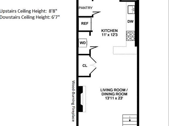 Features include: Wood-Burning Fireplace, South and North Exposures, High ceilings, hardwood floors, custom lighting, large picture windows, Built-In Air Conditioners and 6 large closets + overhead storage