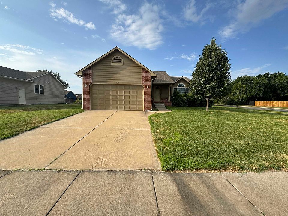 Just Listed! 4 bedrooms, 3 bath home in Goddard with finished basement and two car garage. Home features vaulted ceiling in main area, all kitchen appliances, master suite with full bath and large finished view out basement with huge rec room, full bath and bedroom! Exterior features deck and sprinkler system on well. Basement also has unfinished 5th bedroom.