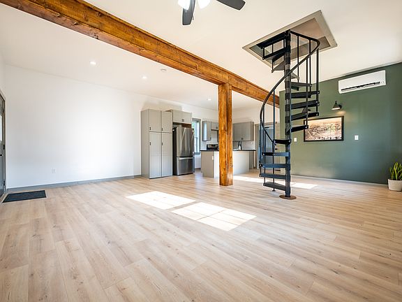 Amazing completely remodeled home on over 1/2-acre private lot at the top of the hill. This modern farmhouse renovation has it all: beautiful cabinetry, center island, leathered granite countertops, open concept living room/kitchen/dining, 2 full baths with new modern fixtures, & so much more! Main floor features the large open concept living room with soaring ceilings & exposed beams, dining area, full bathroom, bedroom, & laundry/mud room. 2nd floor features a family room, 2nd bedroom, & 2nd full bathroom. You'll enjoy the outdoors from the 2nd floor deck, main level patio, or private hot tub patio. Have the convenience of being in town, but feel like you're in the country. 1-car garage/storage shed & mature trees. Nearly everything new!