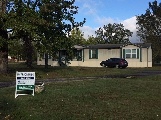 Modular Home on Corner Lot for sale Clayton,OK; The Home Sets on 7 Manicured Lots in City Limits of Clayton. Property is located at 221 West Douglas Street Clayton,Ok 74536. The Modular home is a 2007 Palm Harbor. There is a storm shelter, storage building & covered carport. Just installed new metal under Skirting around outside of home. This modular home is in excellent condition has been lived in lightly. The home has two living spaces on formal in entry and the other just off of open concept vaulted ceiling kicthen with island and bar and also has a seperate dinning room. The Master Bedroom is a must see has large walk-in closet and bath has his and her vanitys with seperate water closed and large soaking tub. The other 2 bedrooms & bath are on opposite end of home. Clayton is a quiet Mountain town in the Northeast end of Pushmataha County located in the Kiamichi & Quachita Mountains near Sardis Lake and Clayton Lake there is great fishing and hunting in area.Check this out can get permit to ride ATV to Businesses in town check at Clayton City Hall to get permit. Give agents Mark and Sherry Gee a call for more information and specifics of this home for sale in Clayton Oklahoma in Pushmataha County.