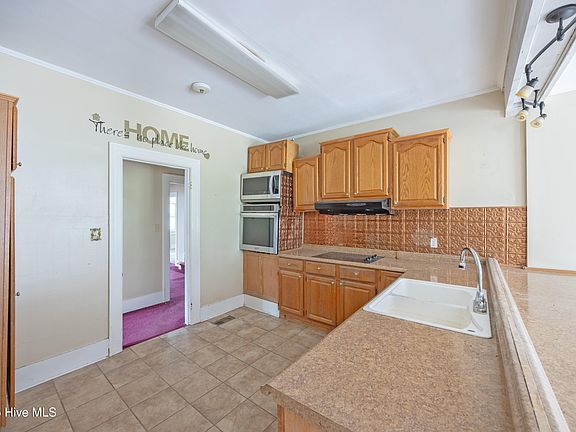 One bath is shared by two bedrooms, while a third is hallway accessible. Detached building with loft and covered open air storage, space are great for those who like to create, grow plants, or need storage. Served by Town of Wallace for water and sewer. Agents may review remarks section in MLS to submit offers. Prequal letter required with all offers. Small area of garage back wall area encroaches over the property line. See survey in MLS docs. ''AS IS '' SALE.