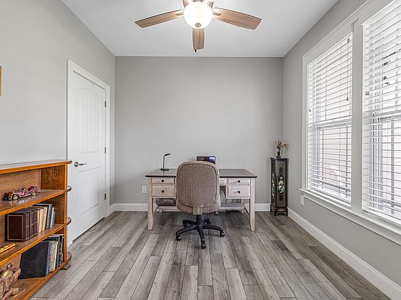 - Ceiling Fan(s), Tray Ceiling(s), Attic Stairs Pulldown, Fireplace, Ceiling - Blown, Solid Surface Counters, Open Floorplan, Split Bedroom Plan, Pantry