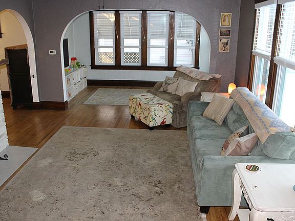 A spacious 3 bedroom, craftsman style, brick house with tons of character and beautiful hardwood floors throughout. This home has a great flow from room to room and feels incredibly open, with beautiful archways to divide adjoining rooms, and windows all around and in every room of the house! There are numerous renovations and updates and, in keeping with the original character of the house, a timeless charm. Enter through the beautiful, rounded, wood front door into a hallway, where you will see the kitchen straight ahead, a coat closet to your left, and the living room to your right. You will immediately notice all of the original woodwork, boasting its beauty, with craftsman style detail all around. Walk into the living room through a beautiful wood door and find the large gas fireplace to be the true centerpiece and gathering place of the home. This rustic fireplace with a distressed, natural wood mantle and white washed brick, is quite the showstopper. There is tons of natural light, as the living room and sun room are completely surrounded by windows. The attached sunroom is separated by a large archway. Moving on through the living room, into the adjoining dining room, find a wonderful area to gather for meals and a new rustic light fixture/chandelier. The open floorpan in these rooms offers a division of spaces, while still feeling accessible to those in the other rooms, making it great for entertaining, or simply spending quality time with your family. From the dining room, you can walk into the adjoining kitchen, which has been completely remodeled with brand new butcher block countertops, a large farm sink, white beveled subway tile and new flooring. There is also a new pendant light and recessed can lighting for plenty of light to make late night bakes. Above the kitchen sink, you can look out onto the back porch and into the back yard while you wash your hands or clean up after dinner (the installed decorative window can be negotiated for, as well as the island, if desired). There is plenty of storage in the floor-to-ceiling, distressed-cream cabinets as well. Brand new, custom built cabinets envelop the gas range oven for plenty of counter space and storage. This beautiful farmhouse-style kitchen is a MUST-see. From the kitchen, there is access to the huge wrap-around back porch, with ample space to gather, entertain, or just enjoy your coffee in the morning. The kitchen also provides access to the basement with a shelved storage room, laundry and plenty of usable space. The basement could easily be finished to use as a guest room with full bath (currently there is a 3/4 bath). From the kitchen you can walk back into the foyer to head upstairs. The stairs boast the beautiful original woodwork, with sturdiness not found in modern craftsmanship. Straight ahead at the top of the stairs is a spacious master bedroom (for size reference, the bed in the photo is a California King size). There is a decent size closet with "his-and-hers" sides. The other two bedrooms also have their own closets, with the nursery closet having ample room for added storage. In the hallway, there is the original wooden built-ins with deep cabinets and drawers for extra storage as well. The bathroom is completely updated with a brand new toilet, modern vanity, new modern/industrial vanity lighting and new flooring. All of the hardware in the bathroom is a beautiful oil-rubbed bronze. The shower has a newly installed pearl colored, subway tile accent wall. There is also an enormous closet with hooks and shelf for more storage.