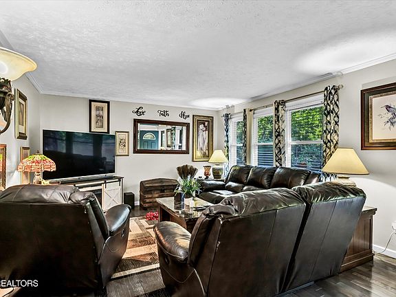 Welcome to this charming 3-bedroom, 3-bathroom brick basement ranch in peaceful Heiskell. Step inside to a living area filled with natural light, creating a warm and inviting atmosphere. The large kitchen offers plenty of cabinet space, beautiful white countertops with grey speckling, and sleek stainless steel appliances. The adjoining dining area flows seamlessly into a stunning sunroom—perfect for relaxing or entertaining year-round.