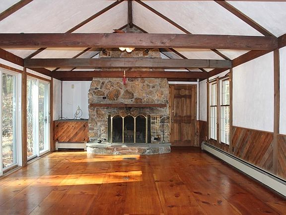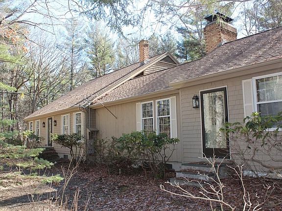 Privacy Lovers Take Note: Classic New England Cape Set Well Off The Road On 4.12 Acres in One of The Best Areas in Town ~ ***Perfect Opportunity For Contractor/Hobbyist With Detached 3 Car Garage/Two Story Barn With Full Walk-Up*** Bring Your Imagination & Special Touches to Make This Home Yours ~ Features a Great Room With a Massive Stone Fireplace, and Beams, **1st Floor Master Suite with Sitting Room & Access to Fantastic 4 Season Sun Room With Gas Stove Overlooking The Private Grounds**, Mostly Wide Pine Floors Throughout, Kitchen With Wood Cabinetry & Walk-Out Bay With Built-in Seating, 1st Floor Bonus Room For Any Need, Second Floor Offers Two Great Size Bedrooms and Full Bath, Finished Lower Level Game Room With Wood Accents/Wood Stove Hook-Up, **NEW Septic System**, Easy Access to Route 495 & Mass Pike Only a Few Miles Away.