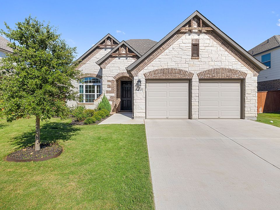 Fabulous one story Brohn home in Oaks at San Gabriel in Georgetown. Built in 2020 and boasting over $70,000 in owner improvements. This open concept plan includes three full bedrooms, a separate, dedicated office/study, an oversized covered patio, a two car garage, and separate laundry room. Interior design elements feature high ceilings, wood look tile and carpet floors (no vinyl), private spacing of the primary suite, and a bright, open kitchen with white cabinetry, granite counters, and stainless appliances. Owner upgrades include extensive, professional landscaping in the backyard, solar panels, Container Store custom closet system, tasteful, non-metal storage shed, and other smart home and security components. The professionally landscaped backyard and outdoor living is an extraordinary finishing touch to this impeccably maintained property. Oaks at San Gabriel is a popular community with hike and bike trails, a community pool, picnic, and playscape area – just 7 miles from the charming, historic Georgetown Square.