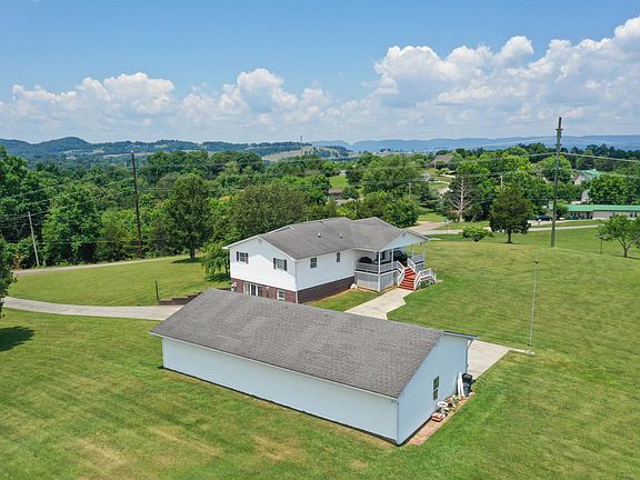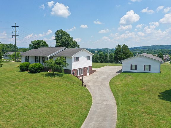 Sitting high on over 2 1/2 gorgeous acres, this great maintenance free ranch home boasts views of the mountains for miles. Its exterior features both a covered front porch and a covered rear deck. Bring your rocking chairs and porch swing to enjoy these peaceful and beautiful views. Additionally enjoy the expansive driveway and detached garage with room for 3 cars along with a walk-in shop area. It's interior features a large eat in kitchen, a dining room with great views, split bedrooms, a huge laundry room with lots of cabinetry, and an expansive unfinished basement with lots of light just ready to be finished into more living space. This home is ready for you to transform it into your new dream space!