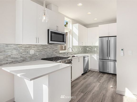 LAST AVAILABLE HOME! Stunning new construction corner/end home in prime Ballard location minutes from Ballard's favorite local shops, eateries and parks. Featuring an open and inviting layout with a plethora of natural light from numerous corner windows, carefully selected premium fixtures and finishes, gleaming floors, floating staircase and gourmet kitchen with stainless steel appliances and all white custom cabinetry. Top floor master suite retreat with spa-like bath and large closet. Additional spacious bedroom on lower level and bonus room/den! Entertainer's roof top deck with views. Super WalkScore of 98 and Bike Score of 91! Four-star Built Green.