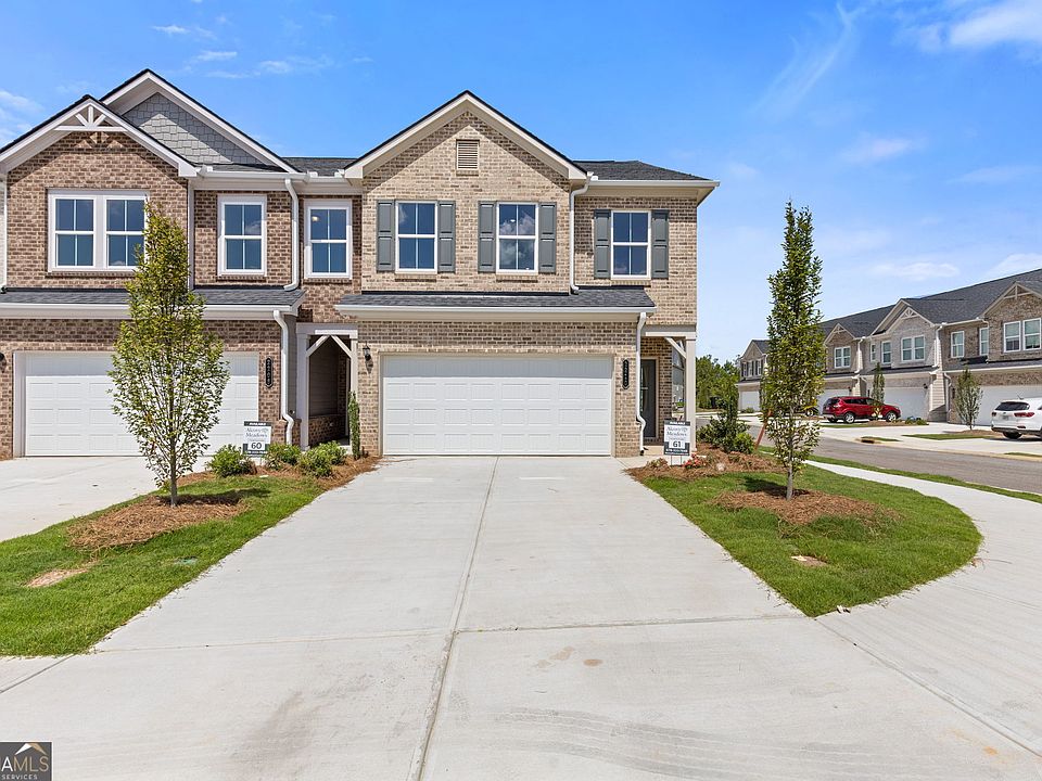 Lot 61- Stockton End Unit- Ready Now- Welcome to the Stockton Floor Plan-a fresh new design offering comfort, flexibility, and modern style in an all-brick front townhome with energy-efficient all-electric living. Step onto the inviting covered front porch and into a bright, welcoming foyer. The open-concept main level features a spacious kitchen, dining area, and family room with smooth surface flooring and a ceiling fan for added comfort. The covered rear patio offers a peaceful outdoor escape-perfect for relaxing with your favorite drink or building your dream plant corner. A powder room and two-car garage complete the thoughtfully designed main floor. Upstairs, the Stockton offers three bedrooms and an open loft, ideal for extra living space, game day hangouts, a home office, workout area, or a cozy reading retreat. The primary suite includes a tray ceiling, ceiling fan, and a spacious primary bathroom featuring a wide double vanity, linen closet, and a window that brings in warm natural light. The Stockton combines versatility, style, and functionality to create the perfect home for modern living. Come see why this plan stands out at Alcovy Meadows!