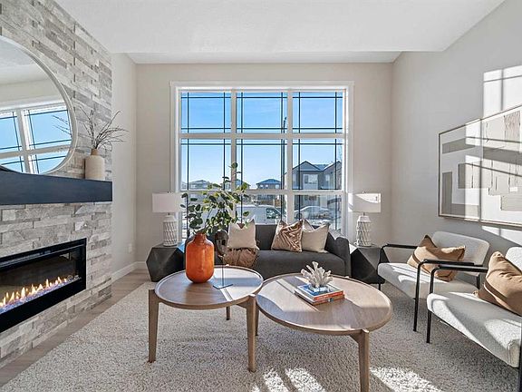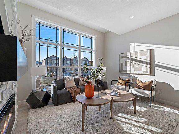 Genesis Builders introduces the Eli - a luxury street-side luxury townhome with NO CONDO FEES! The Eli townhome features an attached double garage and a rooftop patio, offering low-maintenance living. The thoughtfully designed home offers almost 1600 sq ft. plus an unfinished basement with 9-foot ceilings, ready for your ideas. Large windows and soaring ceilings on the main floor let natural light fill the open-concept living space. The chef-inspired kitchen features sleek cabinetry and stone countertops and is well-equipped with stainless-steel appliances. The kitchen is tucked away yet still feels open and inviting, providing ample room for activities in the open-concept dining and living room. A floor-to-ceiling tiled fireplace is the living room's focal point. Complementing the main floor is a convenient half bath, storage, and access to the attached double garage, which is large enough for a truck. Venturing upstairs, you will find a spacious primary retreat with a spa-like ensuite featuring a shower, his-and-hers sinks, and a walk-in closet. Two additional bedrooms, a full bathroom, a flex room, a 4-piece bathroom, and laundry facilities complete the upper level. Enjoy spending time on your upper rooftop patio, situated above the garage, which is an excellent space for entertaining. Bayview is a beautiful community with parks, benches and pathways that meander throughout the community and along the canals. Kids and adults alike will enjoy the outdoor basketball nets, gym, amphitheatre, and tennis courts, which will convert into a skating rink in the winter. Come and see for yourself all the amenities the community has to offer!