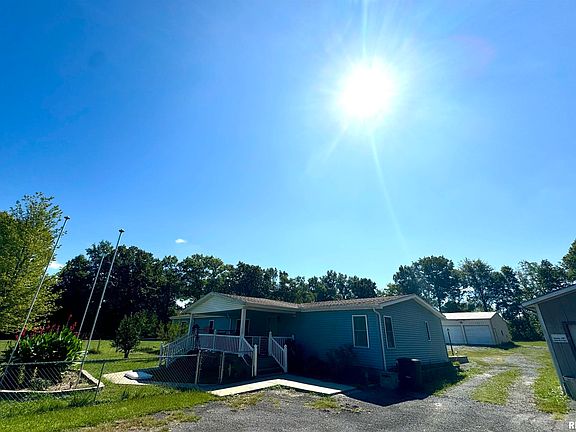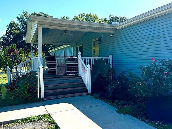 Country Living close to town! Check out this large 4 bedroom 2 and half bath manufactured home on 3.86 acres. Improvements in last 11 yrs includes 5-8 plywood/wrapped under the new vinyl siding, kitchen and master bathroom remodeled, large sunroom and concrete work added to the back. There is a 30x40 pole barn with car lift, 24x40 garage, large carport, pool that's only a few years old and a pond!. Enjoy sitting on the large, covered porch with your furry friends with a fenced in front area that also has a storm shelter. This home has A LOT to offer, schedule your showing today!