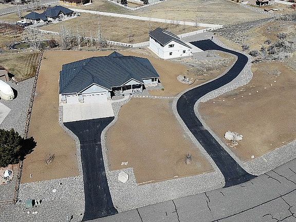 Unique, custom-built one level 4 bedroom, 2.5 bath home with attached 3 bay garage. 1.62 acres with irrigation. Separate 4 bay, 40' X 50' detached garage with 2nd level approx. 1,000 sf heated office/living quarters. Trex decking. Lots of windows with marble sills. French doors. Alder Wood and Glass cabinets. 3' wide hallways. Floor to ceiling gas stone fireplace. Caesar Stone quartz kitchen counter tops. Sun Coat Max applied to all windows. Alarm system. Plentiful phone and internet jacks. Walk-in closets. Stereo hook-ups throughout. Self-closing drawers and toilet seats. Energy features and extra insulation. Whole new landscaping just completed- over $60,000 in new improvements so price adjusted some to cover more improvements. If you want a quality custom built home and fantastic views (360) with outstanding improvements this is your high dollar home set above Montrose on a private cul-de-sac lot. New landscaping has been completed complete with awesome sprinkler system and more. Only $150 per sq fr which is a real bargain- check the comps!!!!