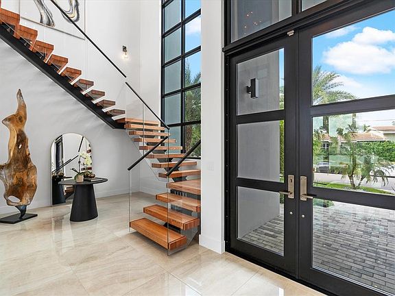 Masterpiece along Fort Lauderdale's iconic Intracoastal in prestigious Coral Ridge offers 5 beds, 4.5 baths, and 4,524 SQFT of luxury on a 12,000 SQFT lot. Unobstructed views of Birch Park and shimmering water pair with floor-to-ceiling windows for breathtaking natural light and moonlit ambiance. The catering-style kitchen features Miele & Bosch appliances, ideal for entertaining. Live-edge built-ins add natural elegance, while luxurious zero-entry porcelain showers, including an outdoor shower, provide spa-like comfort. Thoughtfully wheelchair accessible with 4 Trane AC units for year-round climate control.