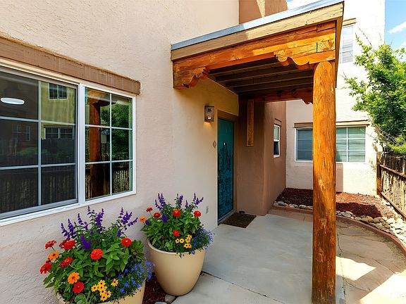 Your affordable Santa Fe home and getaway starts here! Enjoy lock-and-leave convenience with the feel of a private townhome in this larger one bedroom, one bath, two level corner condo located in gated Dos Santos. With no one above and a desirable hilltop setting, this home offers rare privacy and open views. The spacious two-level design creates excellent separation between living and sleeping areas, while the remodeled bathroom with new bathtub and tile adds a fresh, modern touch.