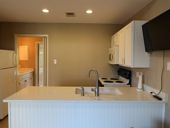 Modern white cabinetsLarge tree covered patioGleaming laminate wood floorsQuartz countersSuper nice clean appliancesGated entryExtra exterior locked storage
