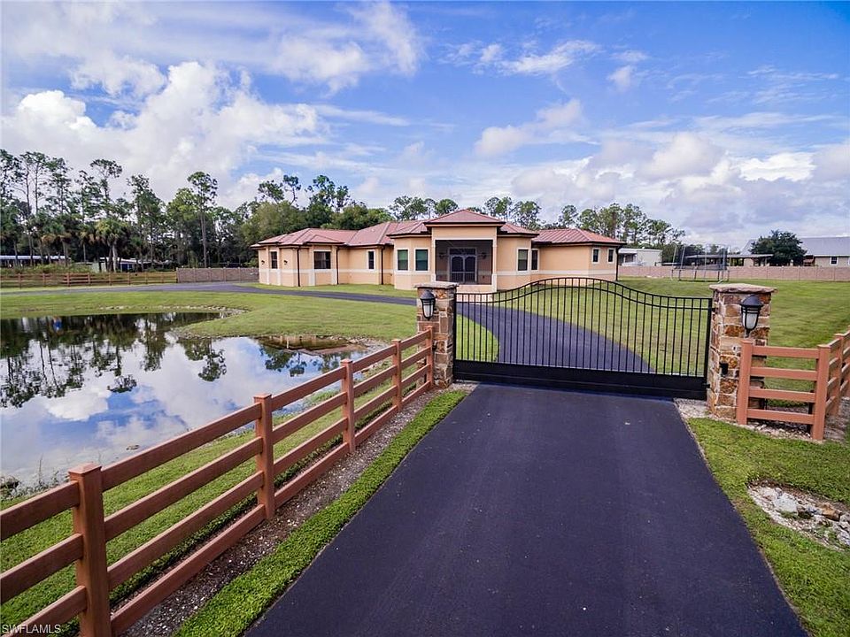 This is a UNIQUE opportunity to purchase this CUSTOM built ESTATE home on 2 acres that comes with ALL the upgrades you can ask for. Escape the City life for the SERENE Country feel. As soon as you walk into the custom double front doors you are stepping into an OPEN floor plan. The gourmet open kitchen is great for your family gatherings. Custom cabinets and level 5 granite. Stunning travertine, plank tiles and tile throughout. The home offers two dens that can be converted into bedrooms. One is being used as a 4th bedroom and office. The home has two living rooms and very spacious bedrooms. Walk in closets. Granite on all windowsills and double crown molding. High tray ceilings and doors. Reverse Osmosis system is throughout the entire home. Security system and pre-wired surround sound. The pool area is perfect for entertaining with over 2800 SF of lanai/patio space. There is also a Wet Bar, ice maker and fridge. The custom saltwater heated pool has stunning edge rocks all around it. Sealed pavers and sealed driveway. Seamless metal roof. The property has 3 gates for entry and secluded by a one of a kind EcoStone fencing.