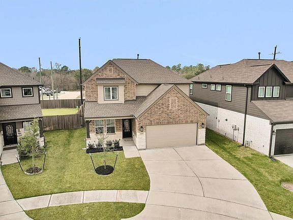 This stunning 4-bedroom, 3.1-bath home, built in 2023 with over 60k in upgrades, showcases wood-plank tile flooring in the main living areas. The primary bedroom and ensuite bathroom are located downstairs, along with a formal dining room, study, half bathroom, and an open-concept kitchen and living space perfect for entertaining. Upstairs boasts a spacious game room, three secondary bedrooms, and 2 full bathrooms. Energy-efficient tankless water heater, full sprinkler system, mini-split hvac system in the garage, and insulated garage door for climate-controlled comfort. Conveniently located near shopping, dining, entertainment, The Woodlands, ExxonMobile, with easy access to major highways, Grand Parkway 99, Hardy Toll Road. Zoned to highly rated schools. Complete list of Builder Upgrades is available in the listing docs.