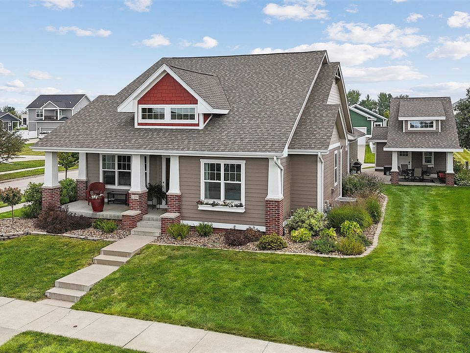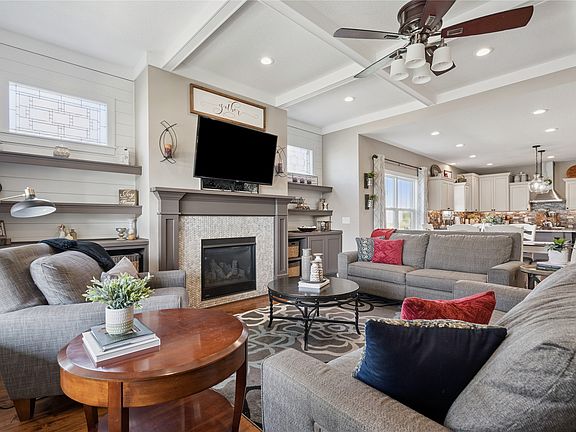 This meticulously maintained & beautifully decorated one-owner custom ranch offers timeless craftsman charm w/ thoughtful upgrades throughout. Featuring 6 bedrooms, 3 bathrooms & over 3,200 SF of finish, this home truly has it all. The stunning main level showcases a 10’ coffered beam ceiling, decorative glass, shiplap accents & custom built-ins w/ lighting. The kitchen boasts tall Thomasville cabinetry, quartz tops, SS appliances, gas range w/ hood & a pantry w/ custom shelving/drawers. The primary suite offers a tray ceiling w/ shiplap detail & rope lighting. The primary bath features dual sinks, quartz tops, walk-in shower & a large custom walk-in closet. The main floor is completed by 2 add’l bedrooms, a well-designed mudroom w/ built-in lockers, a barndoor & a spacious laundry room w/ sink. The LL impresses w/ 9’ ceilings, radiant in-floor heating, a living + rec room w/ limestone ledge, 3 bedrooms, ¾ bath & abundant storage w/ custom shelving. Relax at the covered patio w/ Bluetooth speakers & patio lighting, all surrounded by beautiful landscaping & irrigation. With an oversized 3-car garage & an extra storage garage w/ attic access, this home offers all the space you’ve been looking for. Extras include Pella windows, blown-in insulation, SimplySafe alarm, pre-plumbed central vac, USB outlets & holiday light wiring. The sellers raised 3 children here, all of whom benefited from the Prairie Trail Scholarship Fund, a special perk of living in this sought-after community.