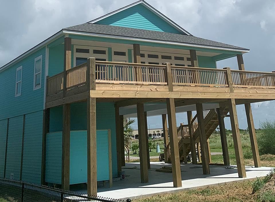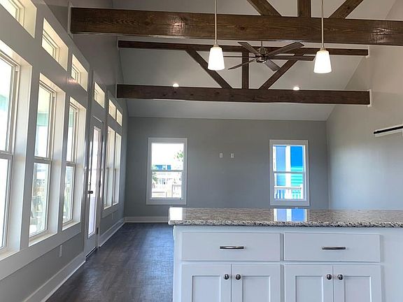 Beautiful New Construction near the center of Crystal Beach. Property is located on a quiet dead end street. This Three Bedroom and Two Full bath setup features an open concept kitchen with breakfast bar plus spacious living area with high ceilings and gorgeous exposed beams. The large partially covered deck is perfect for relaxing and entertaining family and friends. Additional features include nice size bedrooms trimmed out with crown molding with ample closet space. Master bath has a custom walk-in shower. Other nice upgrades include all stainless kitchen appliances with custom cabinets and granite countertops. Laundry room located next to Master Bedroom. Lots of windows to enjoy the views. Downstairs has sand shower and oversize garage for storage. Builder Warranty. FEMA Flood Zone AE for Lower Cost Flood Insurance.
